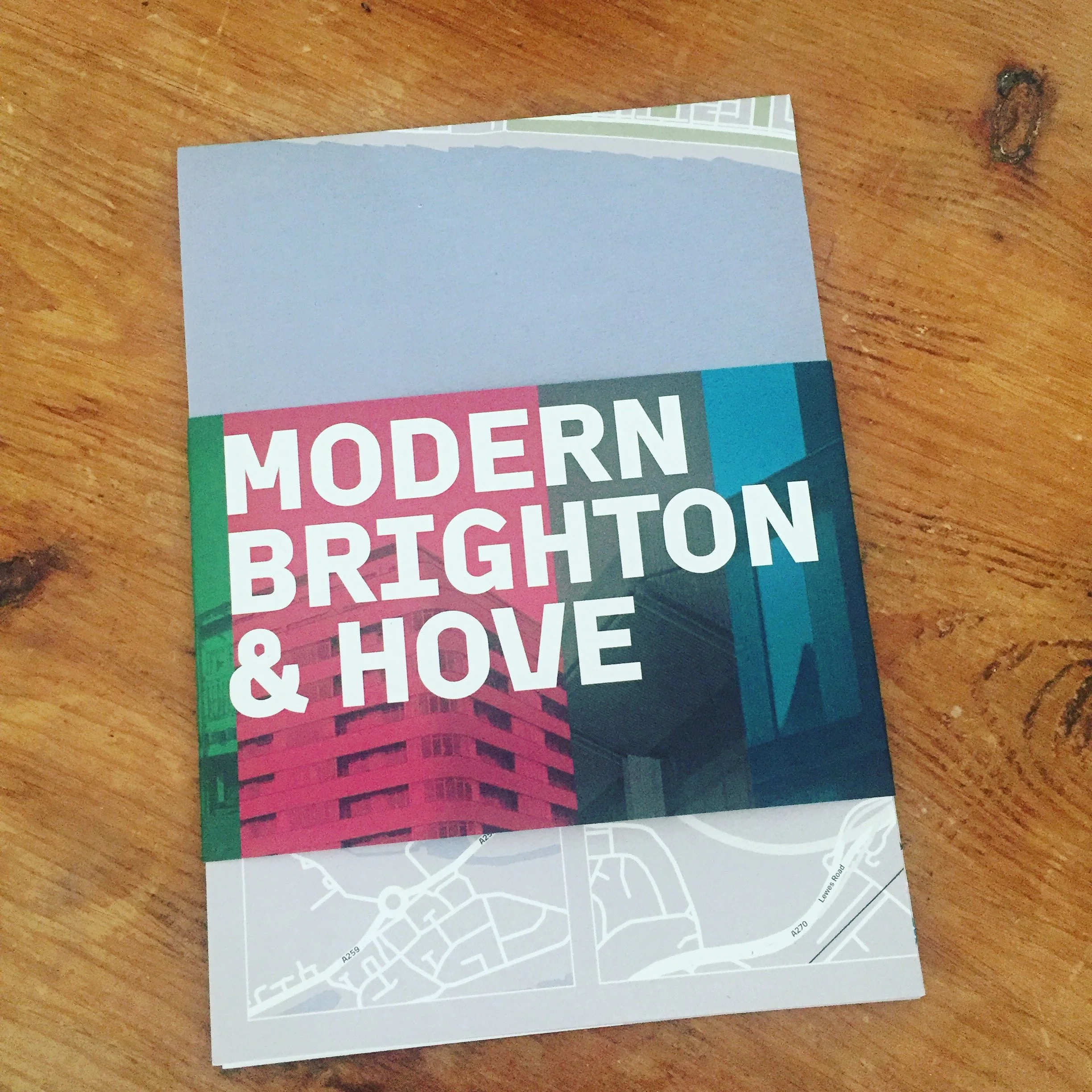 The Modern Brighton and Hove Map was a curated guide to the city’s architecture from the past 100 years, featuring notable examples of Brutalist, Modernist, Art Deco, and contemporary buildings across domestic and commercial contexts. Launched in 2017, the map was accompanied by a programme of talks and guided walks encouraging public engagement with Brighton and Hove’s built environment. I co-developed the project with Conran & Partners, placemaker Richard Wolfstrome, and architectural photographer Jim Stephenson, drawing on shared interests in design, place and visual culture. The project was funded by RIBA Sussex and the Sussex branch of the RSA.